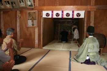 | 午後2時半より、改修工事に伴う足尾山御祖神社仮殿遷座祭が行われました。足尾山御祖神社の御神体は神楽殿奥に仮宮を設け、そちらにお遷し致しました。 |
