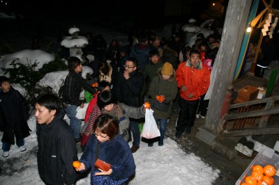 つき、1つとさせていただき ます)の方に招福開運の金 幣守を差し上げます。玄関 にお祀りください。 大晦日の夜11時頃よ り、整理券を差し上げますの で、社務所までお申し出くだ さい。 |