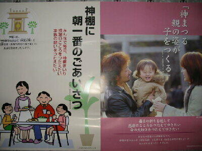 で、世の中のお父さんへ!! 肉親や家庭に対する愛情を育むには、神棚や仏壇に家族そろって手を合わせる事がとても効果があります。神様やご先祖様がいらっしゃったことにより、お子さんがこの世の中に生を受け、今があるのだということを教えてあげてください。亡くなった方のいらっしゃらない家庭では普通、仏壇はありませんから、そんな家庭では是非とも神棚を設けてください。「神様はご先祖様とは関係ないだろ。」と言われるかもしれませんが、実はご先祖のご先祖のずーっとご先祖は神様なんですよ。