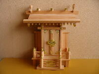 | 神棚の形というと、一般的に下のような物がまつられています。あなたの家に神棚があるのなら、お札を納める箇所の多い少ないは別にして、形はこんな形ではないでしょうか。 |