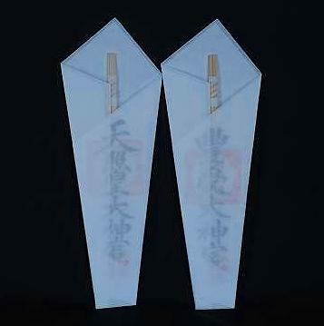 | あくまでもウワサに聞いた話ですが、「そのスジの人」に見えない事もない神主さんが、神宮大麻の代金を納めるため、「大麻代」と書いた振込用紙を持って銀行へ行った所、危うく通報されそうになったとか・・・・・・・ 前置きはさておき、いわゆる麻薬としての大麻が取り締まりの対象となったのは、意外に新しく戦後の事だったようで、それまでは一般の農家でも当たり前のように繊維としての麻を栽培していました。もっとも麻薬としての成分は日本の麻には少なく、育て方もまっすぐ長く、麻薬として使う葉の部分などは、なるべく少なくなるように育てるそうです。これ以上書くと「痛くもない腹をさぐられる」事になるかもしれませんから止めます。 それでは本題。大麻(たいま)とよばれるお札がある理由です。大麻はもともと「おおぬさ」と呼ばれていました。「ぬさ」は幣とも書き、麻を始めとして神様にお供えする布や紙などの事でしたが、後になって神事の道具にこれらの物を使う場合でも「ぬさ」という言葉が用いられるようになったようです。 そして、お札が大麻なのは、お祓を修した証拠である麻串(ぬさくし)をお札に用いるようになった事からだとされています。現在でも剣先型のお札として、その形態が各地で残っています。現在では、神宮大麻のように芯に紙を巻いて作られているお札については、各神社でも「大麻」とか「〇〇神社大麻」と呼ばれるようになっています。 「たいま」は悪いイメージがあるから古来からの「おおぬさ」と呼んだ方が良いと思われる方もいると思いますが、いわゆる「祓え串」を神社では「おおぬさ」と呼びますから、混同を避けるためにも「たいま」という呼び方が無くなるとは思えません。それにしても「悪事千里を行く」と言うことで悪い意味の方が極端に有名になってしまいました。麻薬の方の名前が何とかならないものかとも思います。 |
