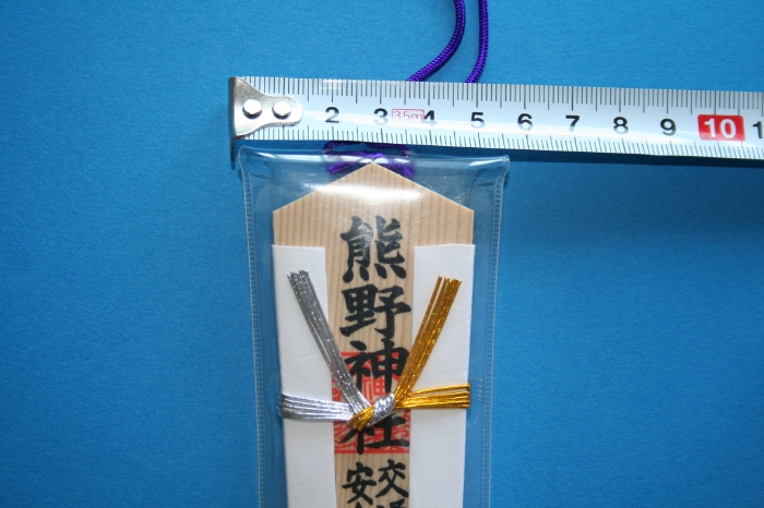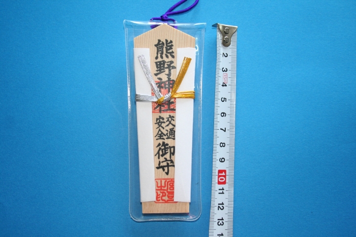 | ・ビニールパックの中に交通安全の木札が入ったお守りです。 ・吸盤は付いていません。 ・ビニールはお焚きあげしてもダイオキシンの出にくい材質です。 ・お守り本体の大きさは13センチ×5センチ程度、ひもの長さは10センチ程度です。 |