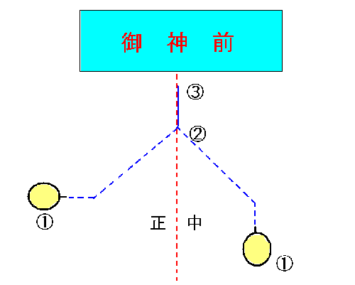 | 神前に至って深揖(45度のおじぎ)を行います。