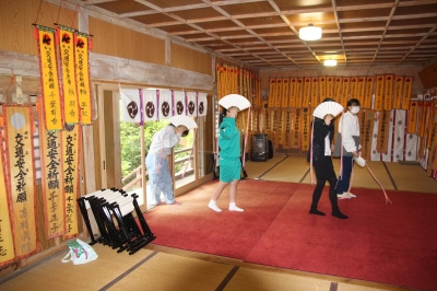 10月11日 浦安舞練習 午後2時より浦安舞の練習が執り行われました。例大祭当日舞を奉納する拝殿と神楽殿にて熱心に練習がされました。17日11時からのの例大祭と18時50分からの奉納演芸大会で披露されます。