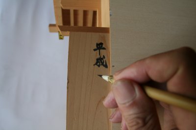 | 白木の神棚は汚れや破損が無くとも、年数が経つと次第に変色していきます。耐用年数というわけではないですが、ある程度古くなったら交換しましょう。伊勢の神宮は式年遷宮といって20年毎に新しく建て替えられます。一般に神棚は伊勢の神宮を模した造りになっていますので、神棚の場合も式年遷宮の20年という年数を基準にして交換を考えると良いでしょう。 神社によっては神棚のお祓いの際、希望により神棚に日付を書き入れてもらえる場合があります。これがあると、次に交換する時期がはっきりして便利です。 |